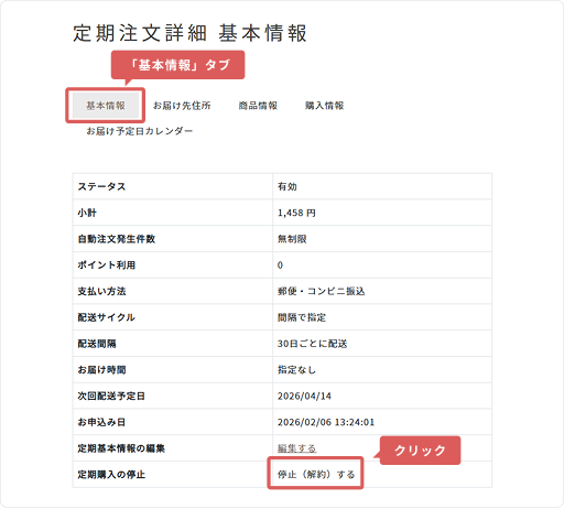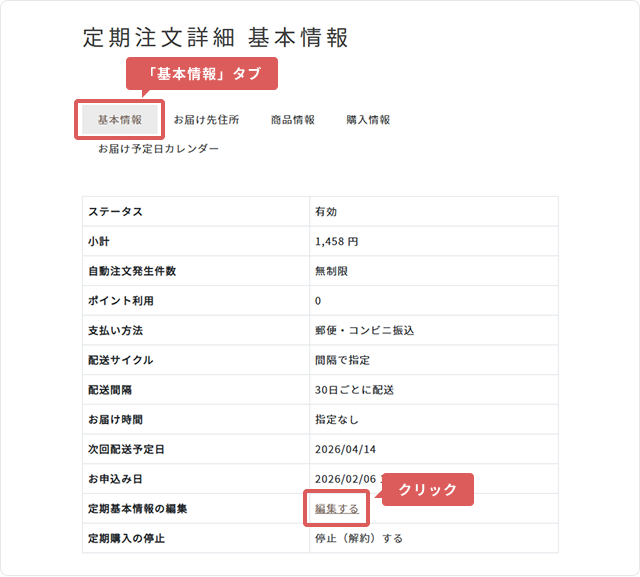 3「基本情報」タブ内「定期基本情報の編集」の「編集する」を押してください。