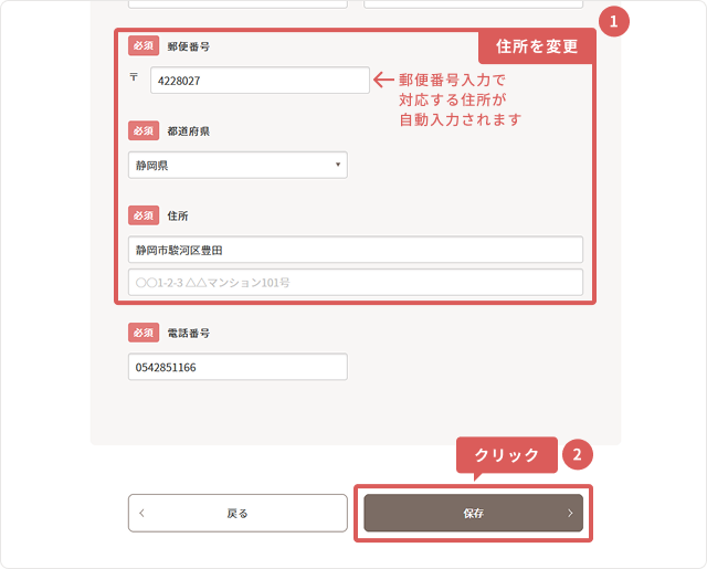 4住所を変更し、「保存」を押してください。