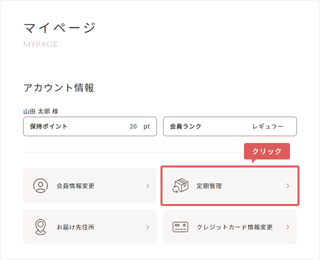 1マイページ内「定期管理」を押してください。
