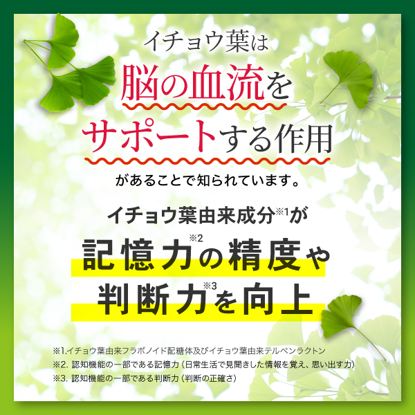 イチョウ葉由来成分※1が記憶力※2の精度や判断力※3を向上