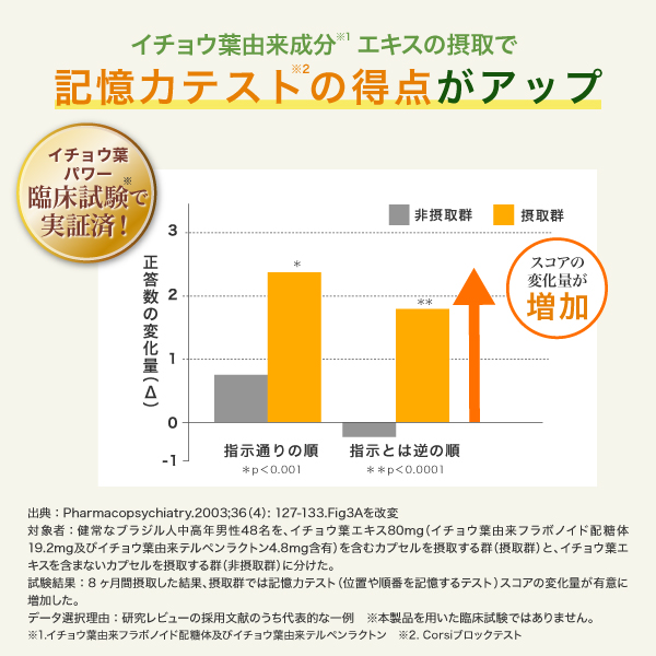 イチョウ葉由来成分※1エキスの摂取で記憶力テストの得点がアップ