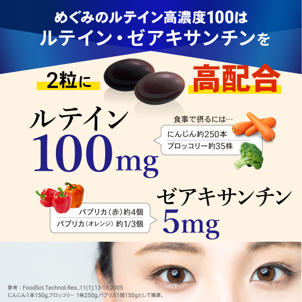 めぐみのルテイン高濃度100はルテイン・ゼアキサンチンを2粒に高配合