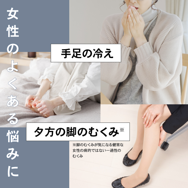 女性に多い冷えの悩み、夕方の脚のむくみが気になる方に!1日たった1粒、体の中から対策しましょう。