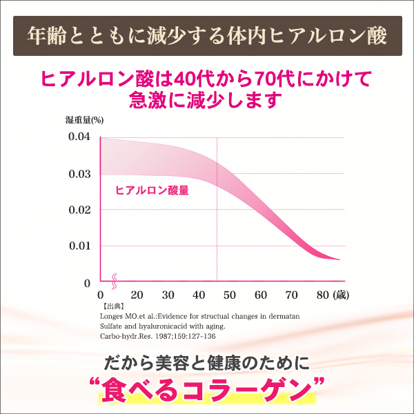 ヒアルロン酸は40代から70代にかけて急激に減少します