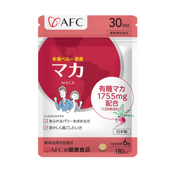 100%有機マカ配合。(1日6粒あたり1,755mg)配合。