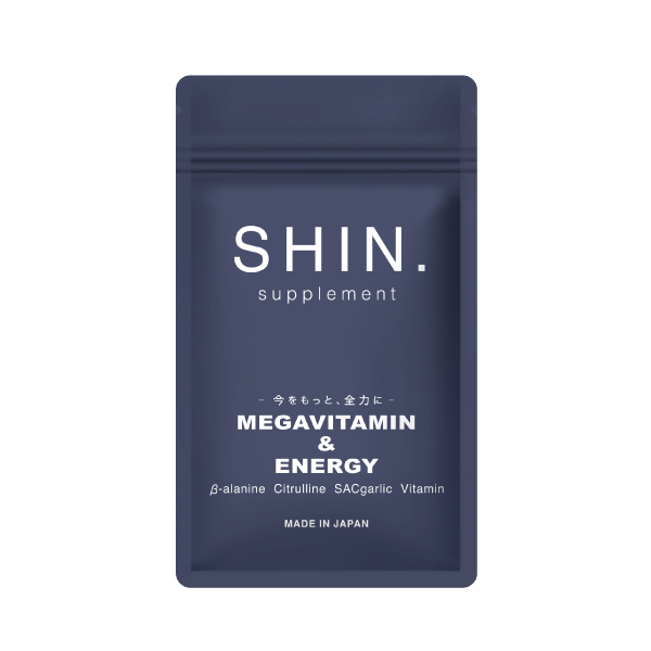 毎日頑張っている男性のために開発された【SHIN.メガビタミン&エナジーサプリメント】は、7種類のビタミンB群にビタミンCを加えて、全部8種類のメガビタミンで、体内に不足しやすいビタミンB群を常に高い濃度でキープします。 さらに、注目の3種類※エナジー成分を配合し、パワフルな毎日をサポート!ノンカフェイン、白砂糖不使用なので安心な飲用できます。