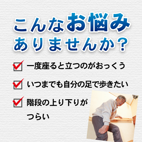 【1日あたり】グルコサミン1800mg、鮫の軟骨抽出物(コンドロイチン硫酸・II型コラーゲン含有)80mg、筋骨草エキス30mg、骨砕補エキス30mg、キャッツクローエキス、ヒアルロン酸
