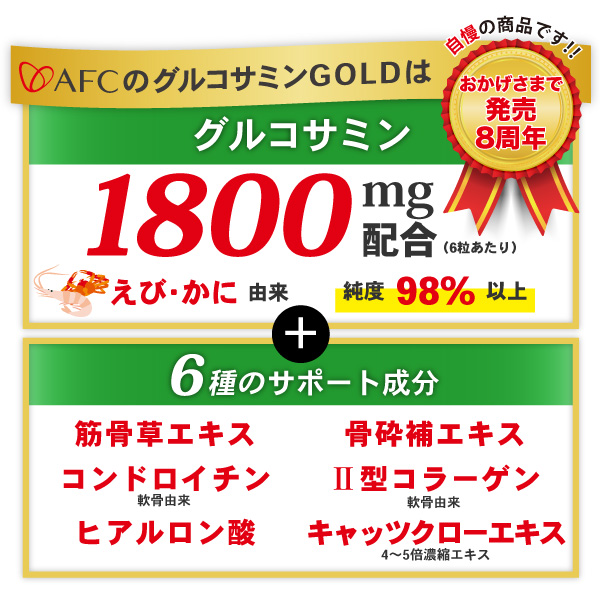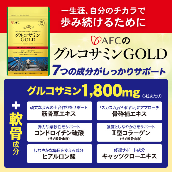 AFC売上No.1の「グルコサミンDX」がたゆまぬ研究により各成分の大幅パワーUPを実現して新発売!これまでご愛用されていた方もこれからの方も長く続けられるように、価格もお求めやすくなりました。