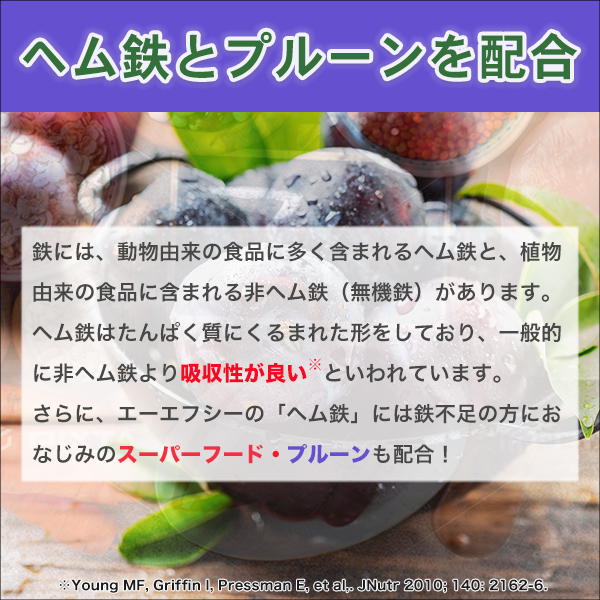 さらに、エーエフシーの「ヘム鉄」には鉄不足の方におなじみのスーパーフード・プルーンも配合!