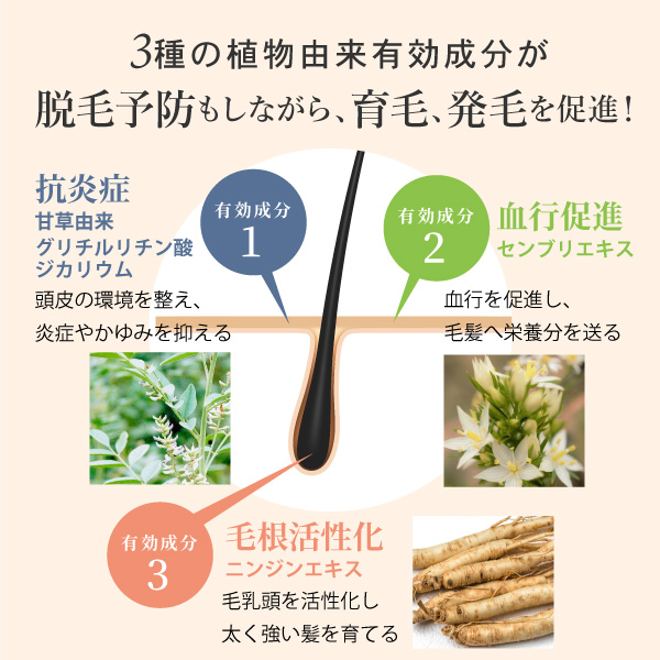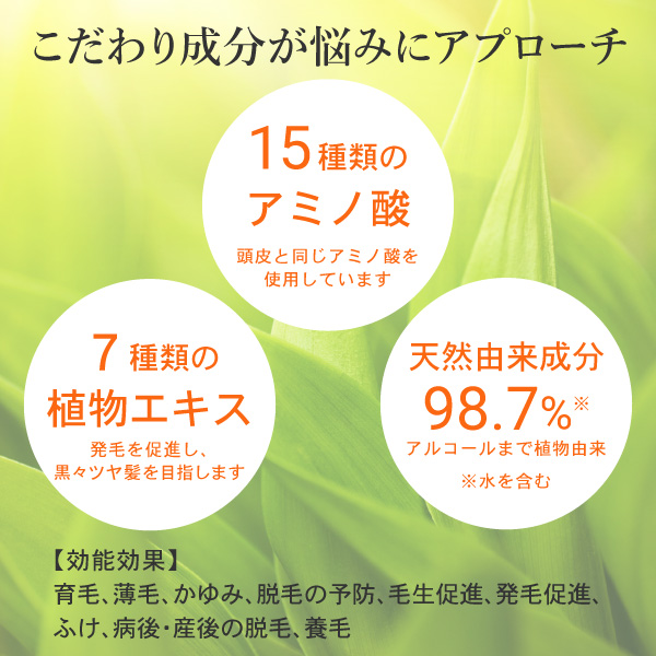 育毛、薄毛、かゆみ、脱毛の予防、毛生促進、発毛促進、ふけ、病後・産後の脱毛、養毛