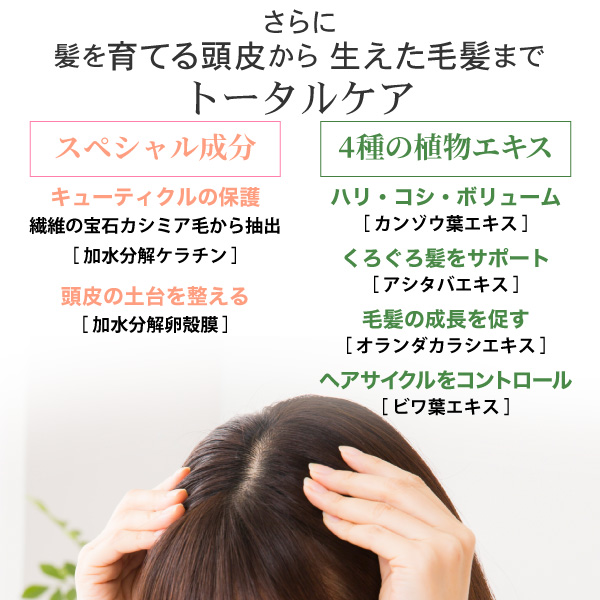 15種類のアミノ酸、3種の植物由来の有効成分※で育毛をサポート。