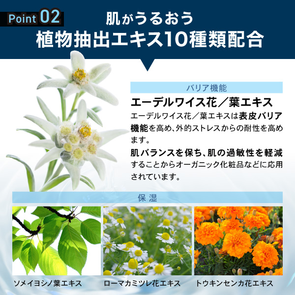 Point 02 肌がうるおう 植物抽出エキス10種類配合-1