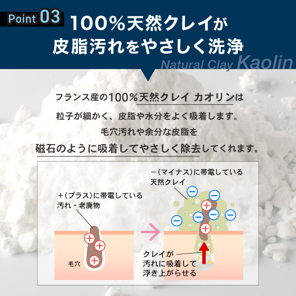 Point 03 100%天然クレイが皮脂汚れをやさしく洗浄