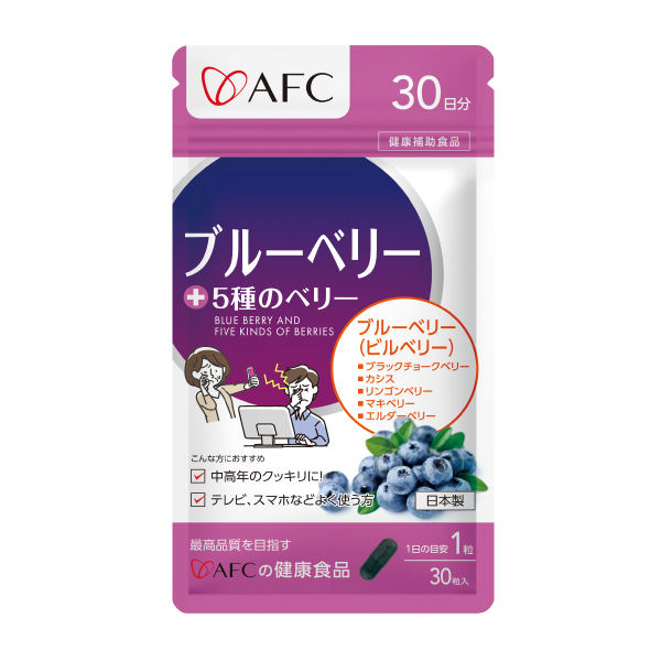 ビルベリーエキス(国内製造)、ブラックチョークベリーエキス、還元麦芽糖水飴、デキストリン、カシスエキス、リンゴンベリーエキス、マキベリーエキス、エルダーベリーエキス/HPMC、ステアリン酸カルシウム、二酸化ケイ素